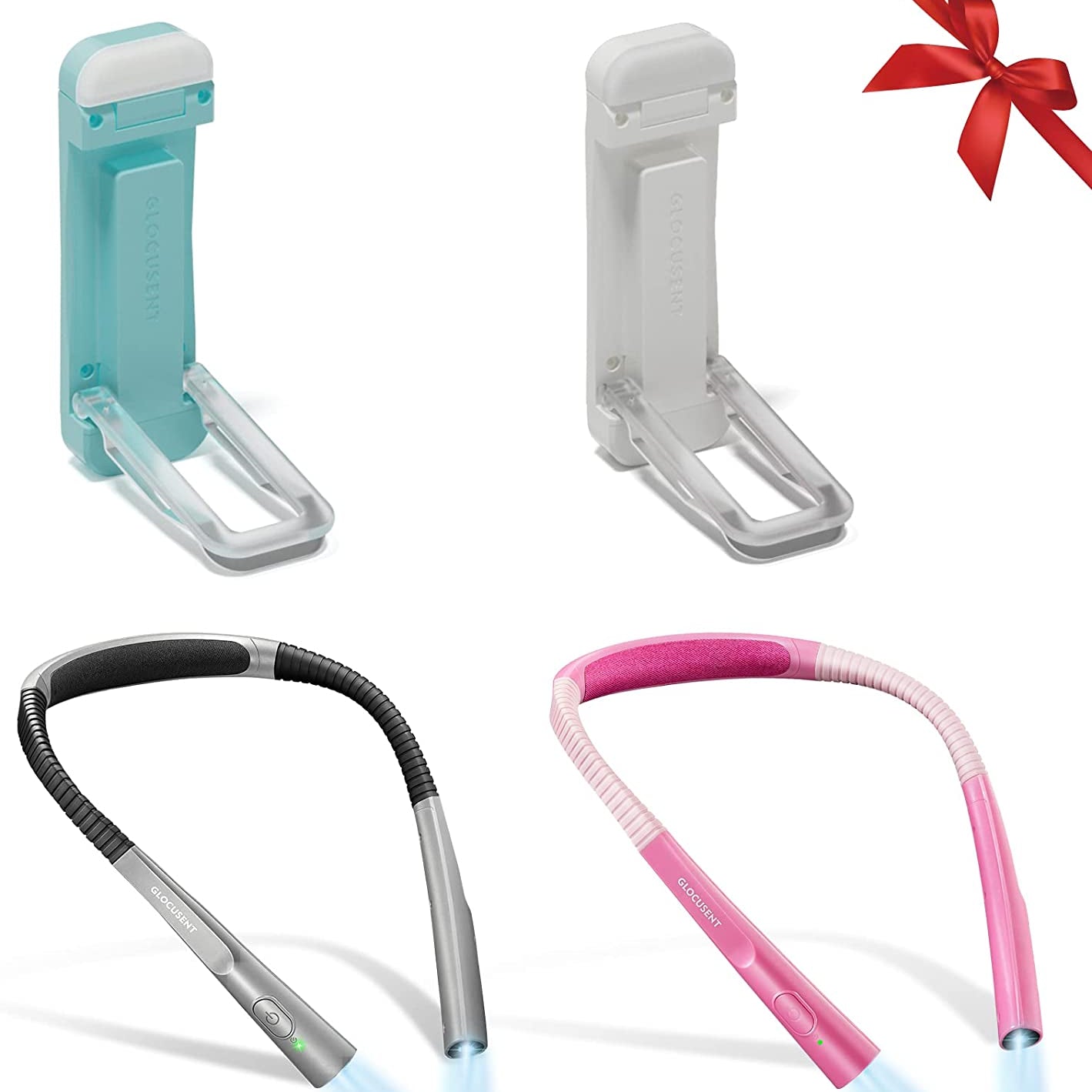 - [Portable Lights Set for Family] A comprehensive lighting solution for every family member in one set. In a family, It is often that one person is the night owl and the other is the early bird, who will always have different needs of lighting at a different time of the day, and the Glocusent family set will solve the conflicts to satisfy all needs for everyone with 2 * Neck Reading Light and 2 * Mini Clip On Book Light.