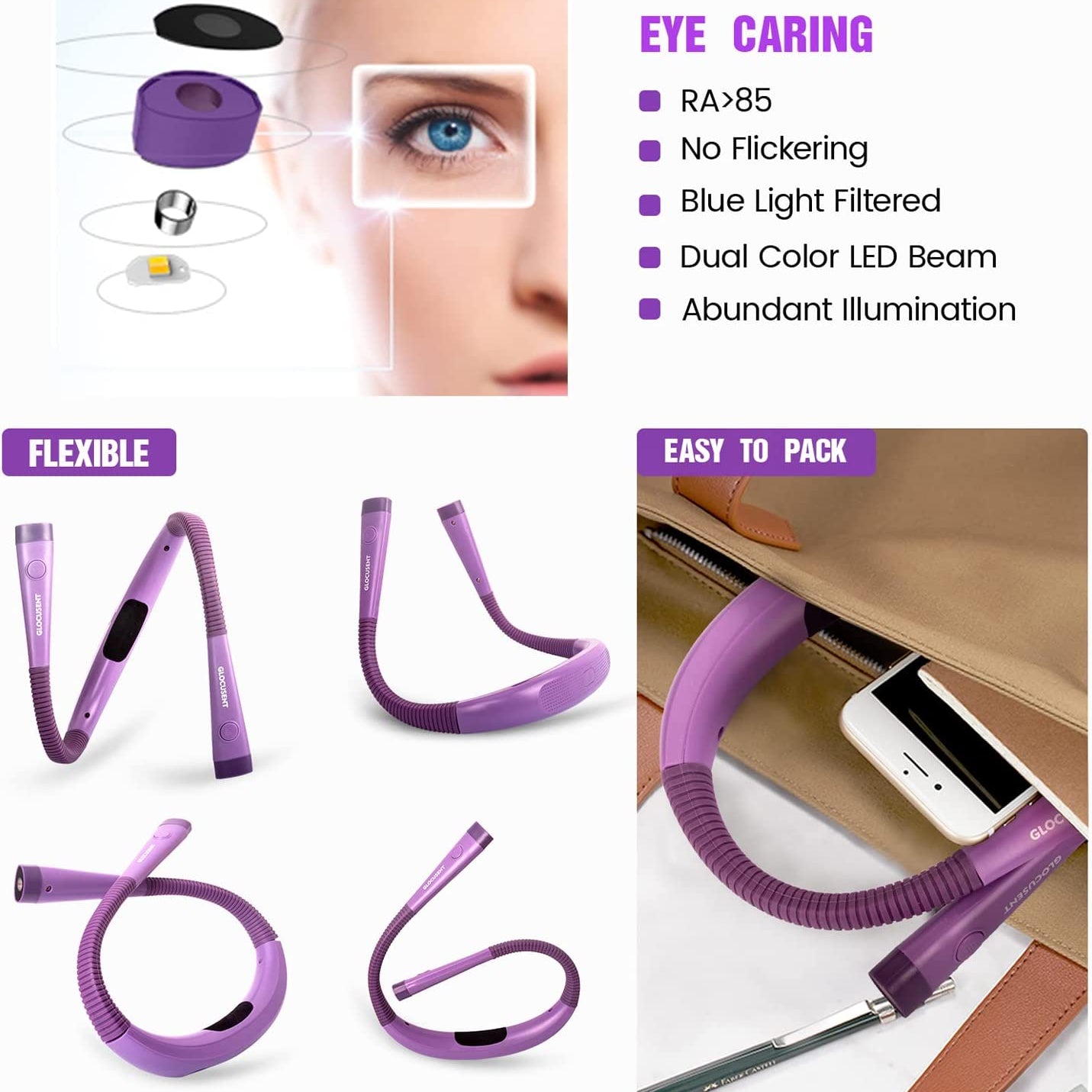GLOCUSENT RECHARGEABLE LED NECK BOOK LIGHT