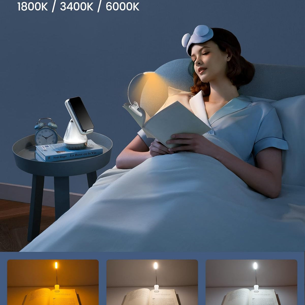 - [ENJOY YOUR BED READING TIME] The amber mode (color temperature 1800K) is designed especially for your bed reading time. It is eye-caring with blue light blocking to avoid your eyes strain. At the same time, this upgraded in bed reading light will stimulate your body to produce more melatonin naturally. Thus you will get a sweet sleep after reading. The best in bed reading light for you.