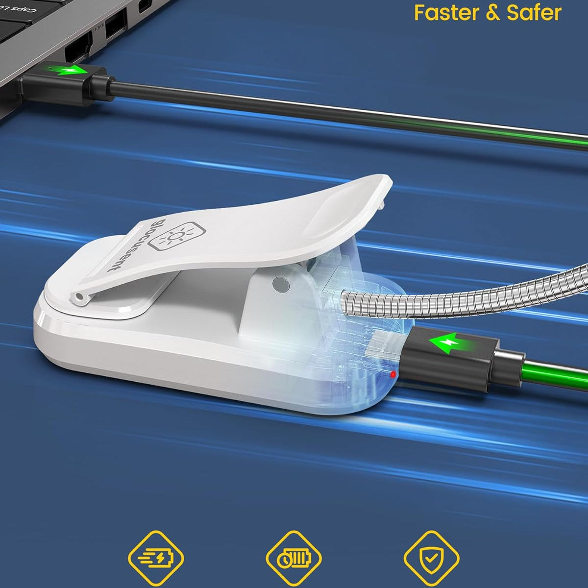 - [80+ HOURS FREE FROM CHARGING] This light for reading in bed means no more waste of your money on batteries. The built-in rechargeable battery provides up to 80 hours of reading time in the lowest setting; and 8 hours in the highest setting. It provides a minimum of 8 hours of wireless battery life which means you are far away from charging for at least 2 weeks if you read 30 minutes every day. With the provided USB-C cord, 1.5 hours only for a full charge. No more worries about the battery life.