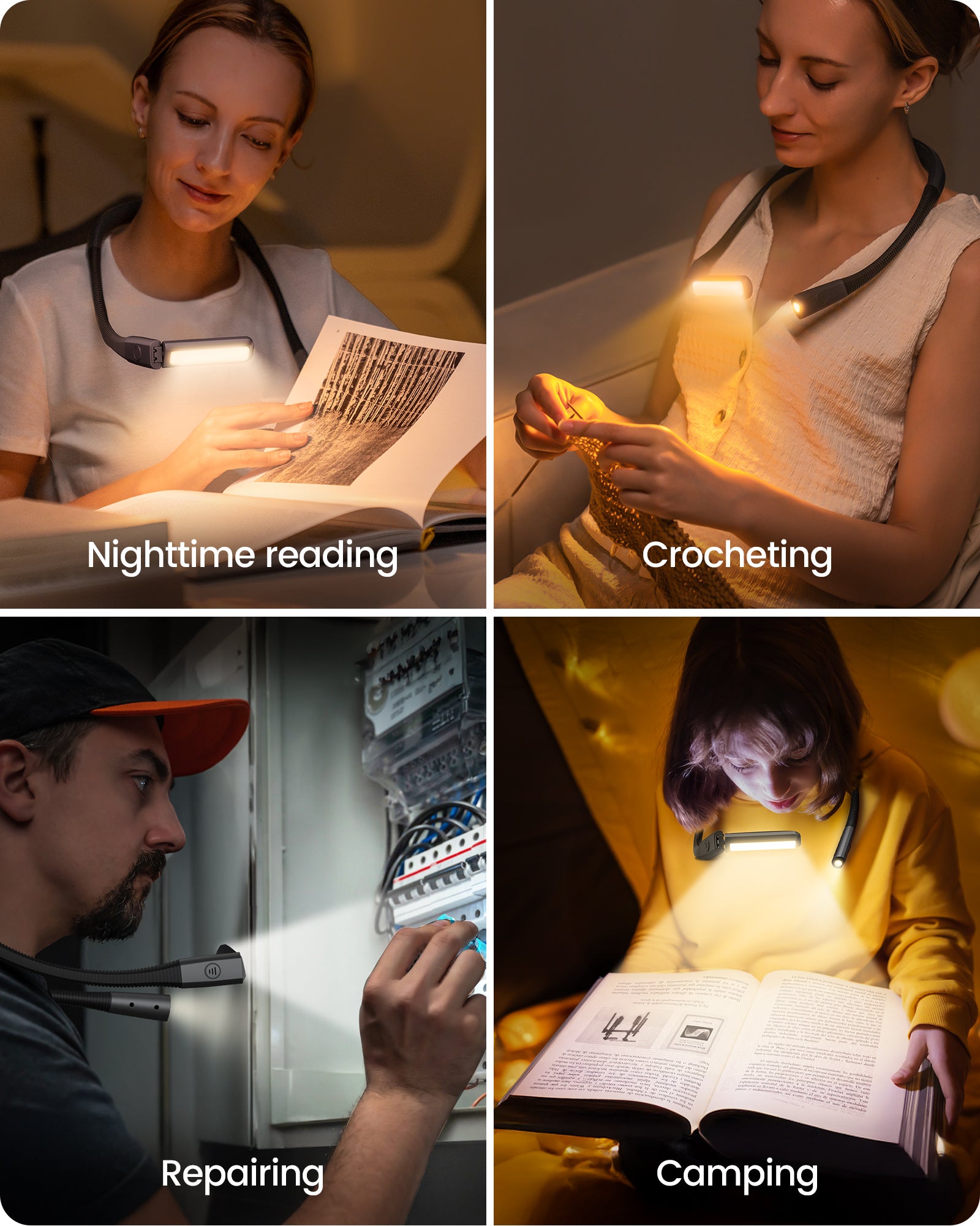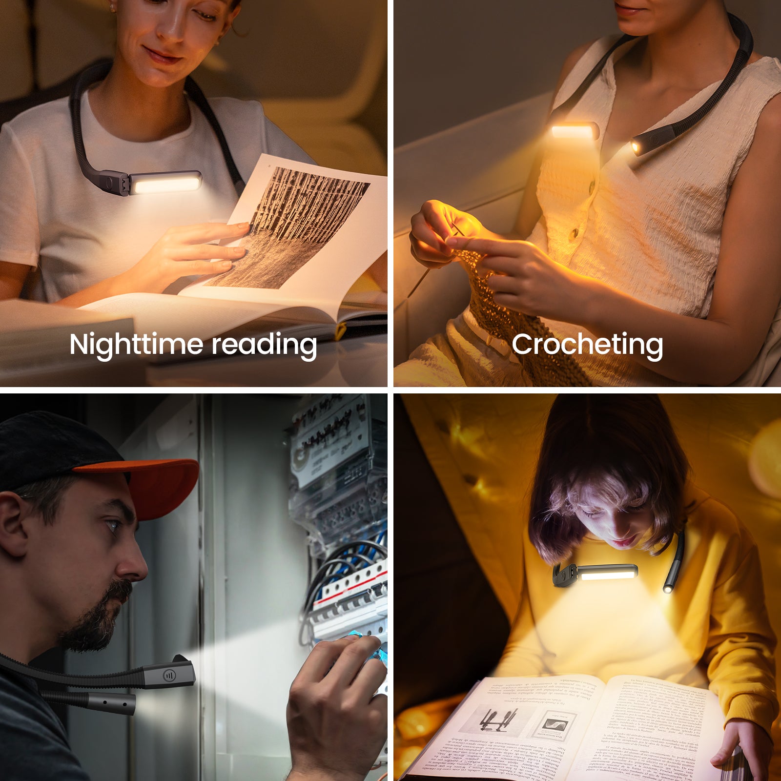- [Ergonomic Design for Comfortable Wearing] Easily position the fully adjustable arm and the rotating head for ideal illumination anywhere. Whether you're reading in bed, sewing on the couch, or making repairs in the garage, this ergonomic neck lamp provides perfect hands-free light. Just wear it for instant and effortless light that boosts your reading and crafting efficiency by 150%.