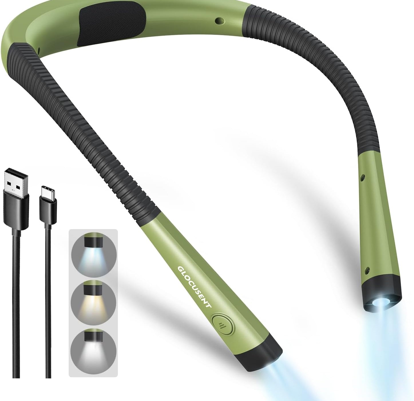 Glocusent neck lights provide variable brightness levels to provide customized illumination, are convenient to use, and can be powered by batteries, power banks, or USB cables to help readers protect their eyes and continue reading in low-light conditions.