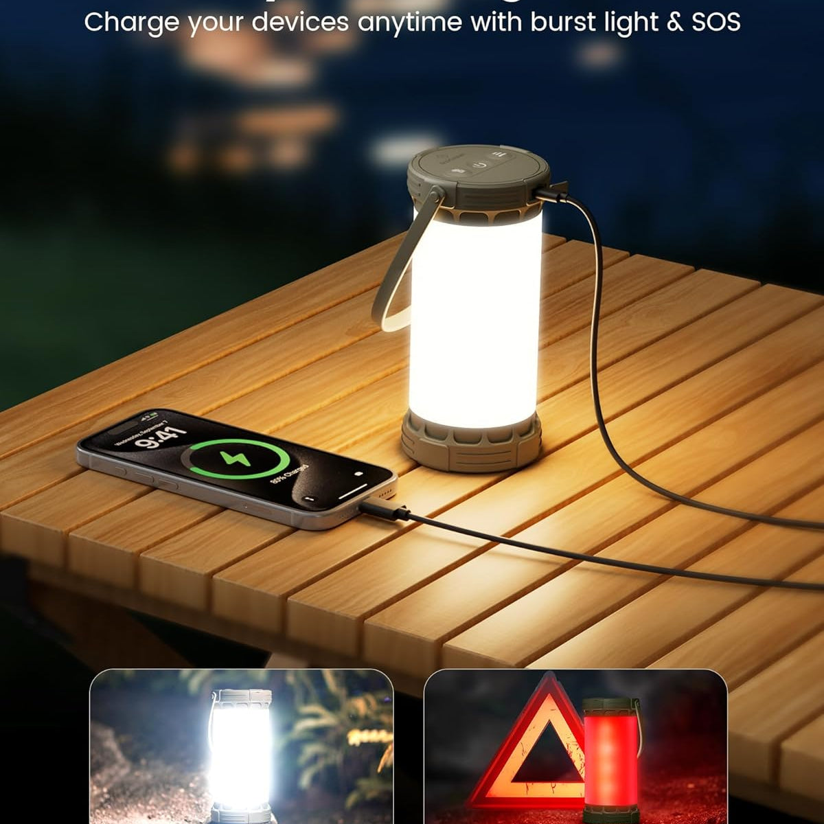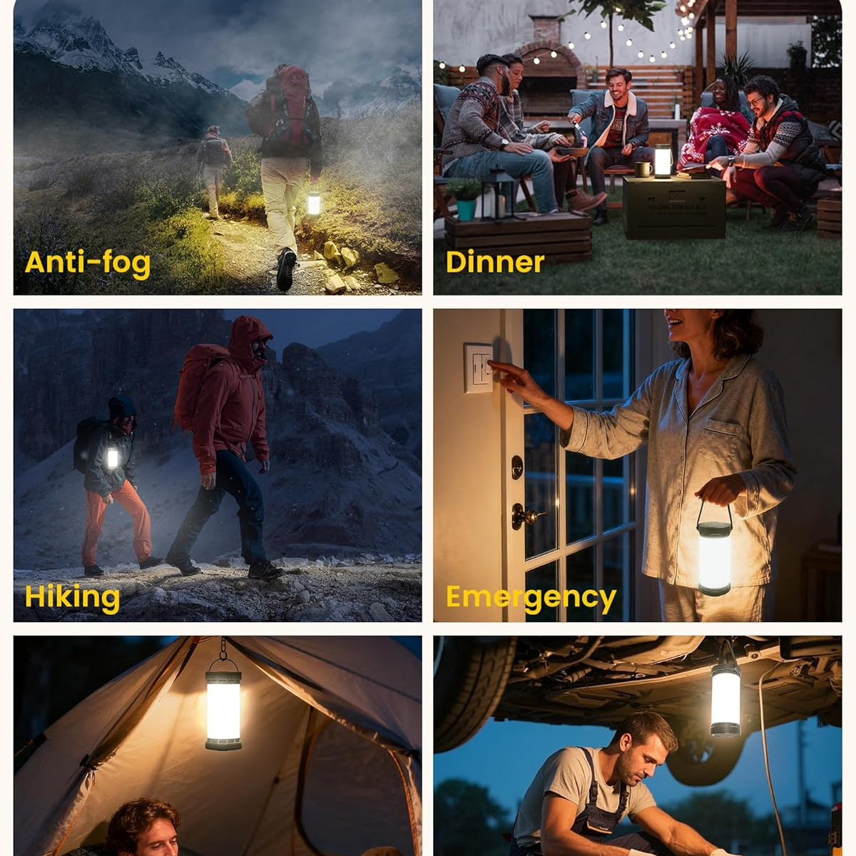 - [Up to 200H of Light] With a built-in 5000mAh rechargeable battery, our camping lantern can last up to 200 hours on low, and a full charge takes just 3.5 hours via USB-C. It's perfect for multi-day camping trips, overnight hikes, or power outages at home, ensuring you're ready for your next adventure.