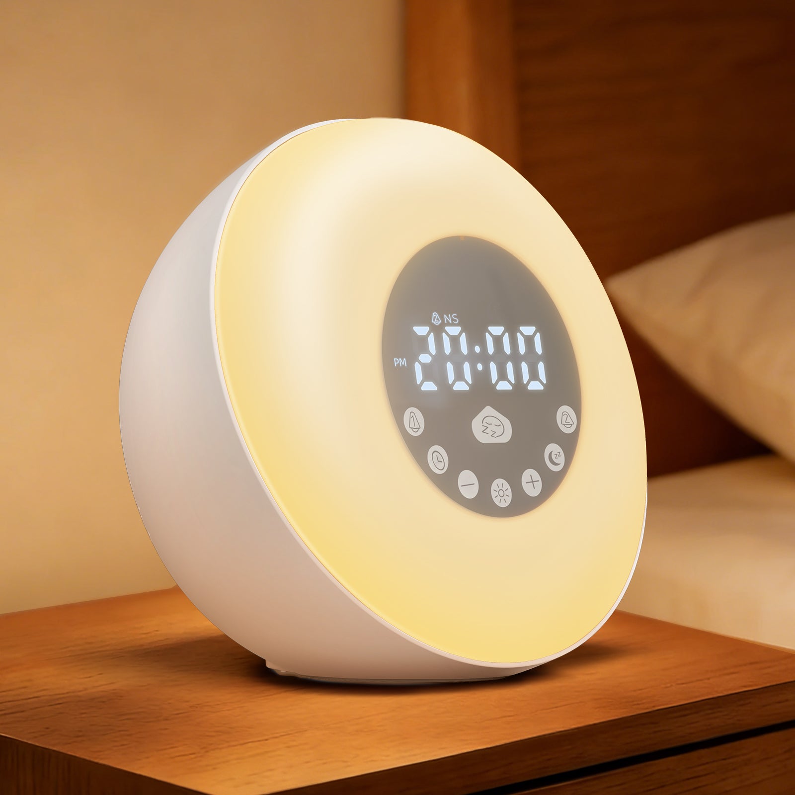 - [A Softer Way to Wake Up] Gradually brightening like a natural sunrise, the light and alarm sound work together to wake you gently. You can set 10, 20, 30, or 40-minute wake timers. The gradual light supports your circadian rhythm and gently suppresses melatonin, signaling your body to wake up smoothly instead of jolting awake to a loud beep, helping deep sleepers, kids, and anyone who struggles with mornings start the day calmer