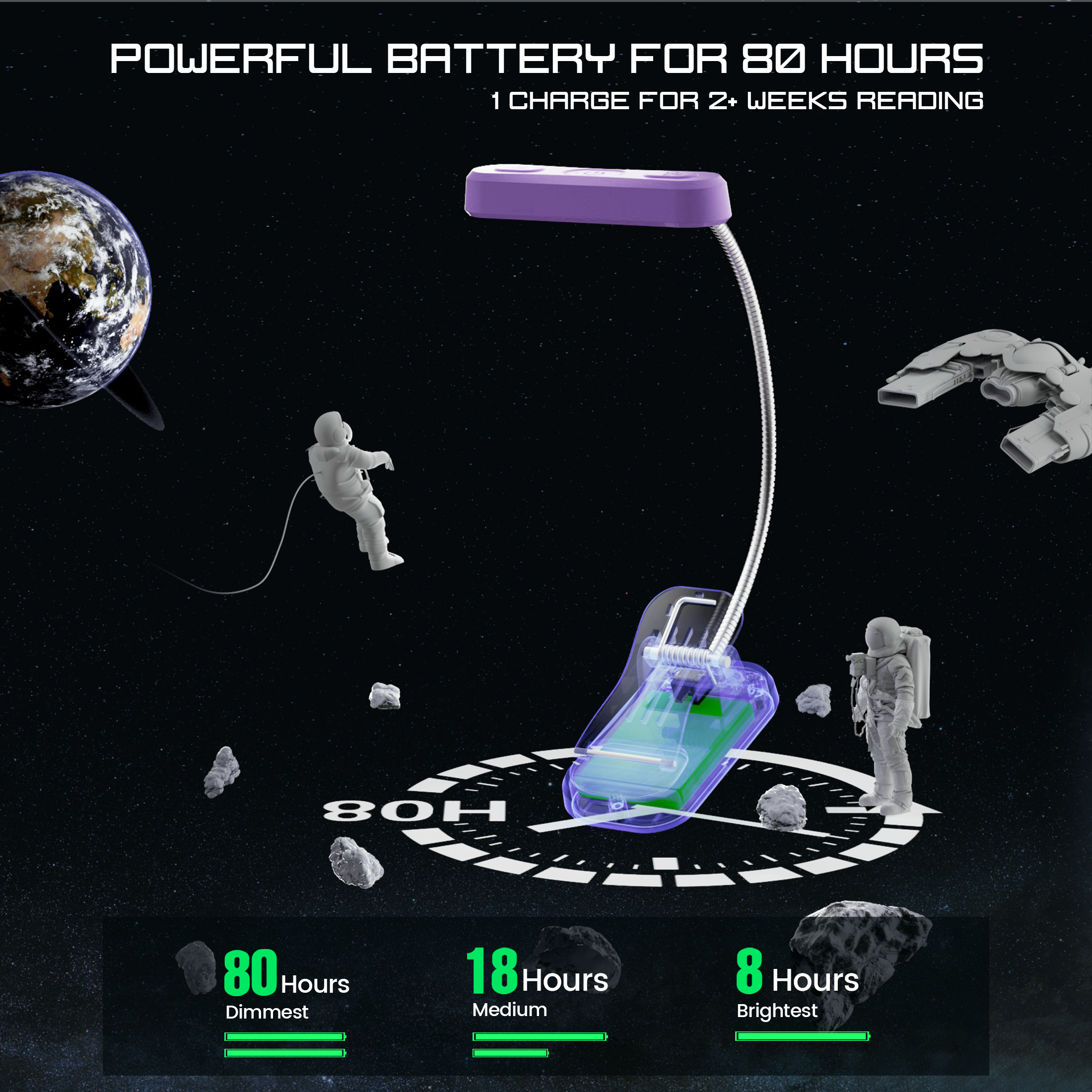 You wished for a lightweight book light with a wider lighting area, and we listened. This horizontal head book light is designed to provide clear and eye-caring broader lighting. Interestingly, we found that the 3 buttons on the light bar look like an ET face, then we named it a horizontal ET head book light. Plus, it's compact to be carried around and improves your reading comfort when reading during your trip, camping, in bed, and more. Here are the 7 special designs that make it your must-own: