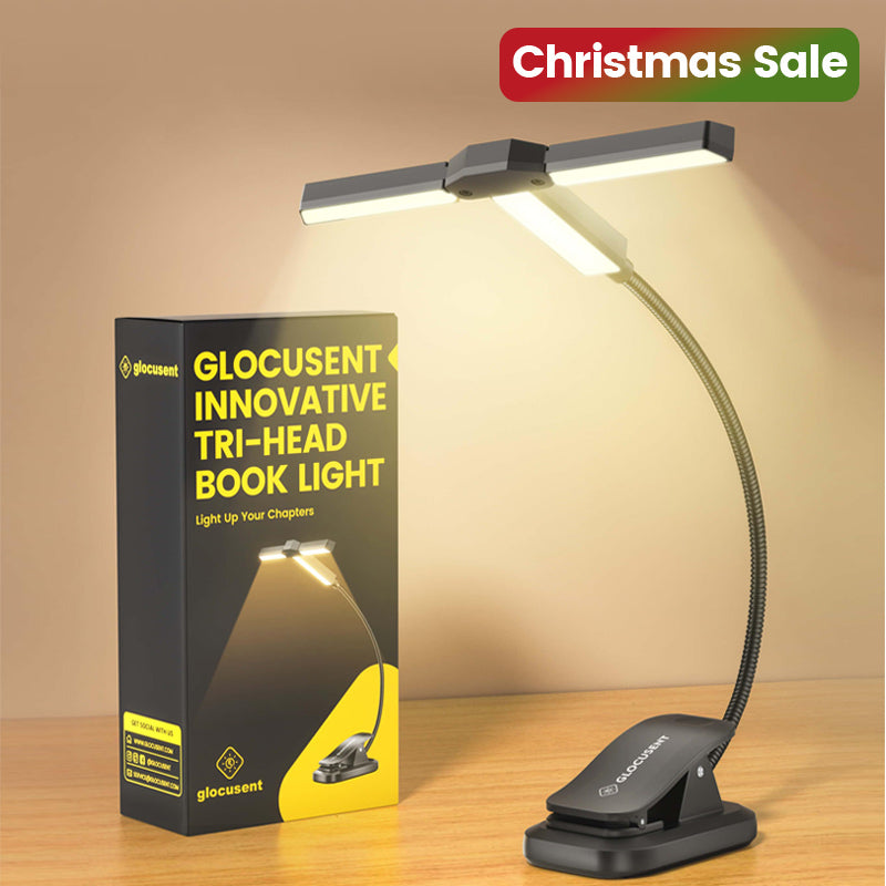 Glocusent Tri-head Clip on Book Light | Purple | Glocusent