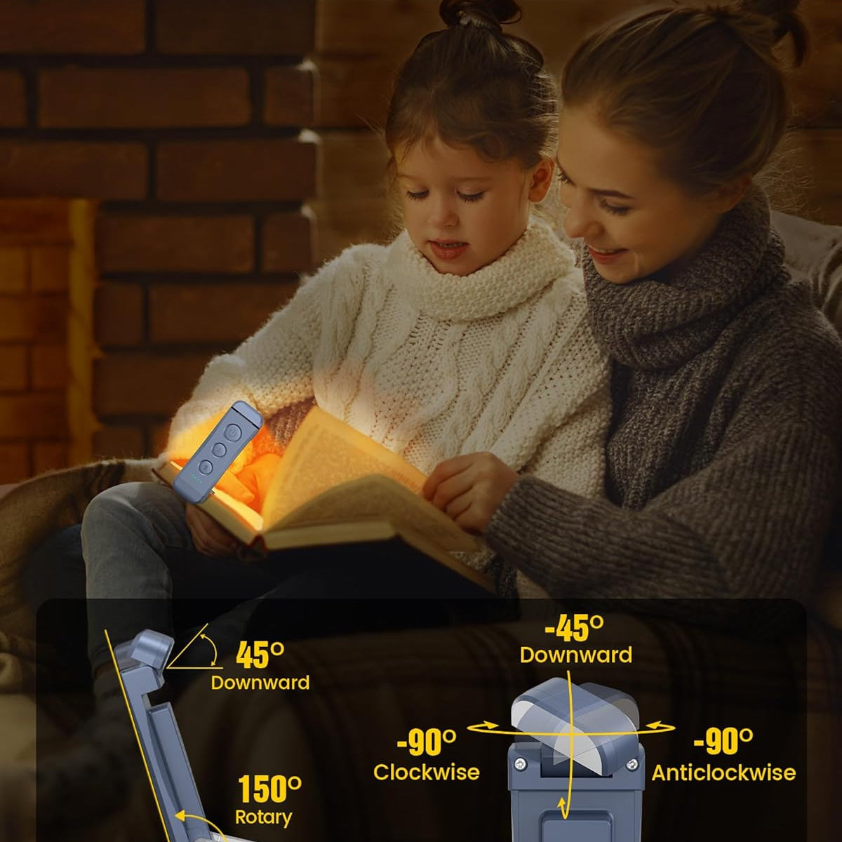- [Flexible & Portable Design] The clamp of the clip-on light can open maximally 150°. The head of the light can be turned left, right and downside with angles of 90°, 90°, and 45° respectively. It is flexible enough for all book sizes reading. You can adjust the angles freely to get comfortable lighting. This book light is only 1.41oz(40g), much lighter than an egg. Its lightweight and small design make it easy to carry or clip on books without much effort. Perfect tiny book light for travel.